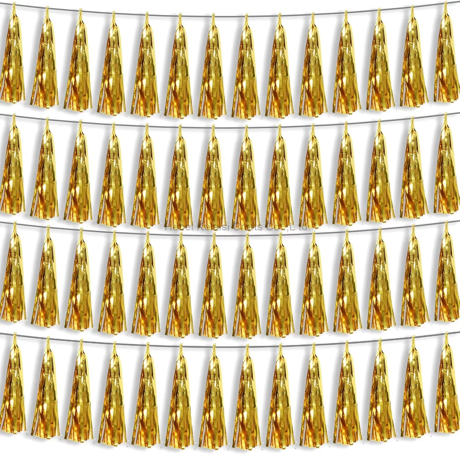 Throwing a party requires a lot of effort, and party planning often requires attention to detail. This foil tassel garland is one of the decorations that completes it all. Made from lightweight metallic foil, these tassels sparkle beautifully in both natural and artificial light, instantly brightening up your space. Whether you're decorating for a birthday, wedding, baby shower, or holiday gathering, these garlands will create a festive atmosphere that will impress guests the moment they enter.