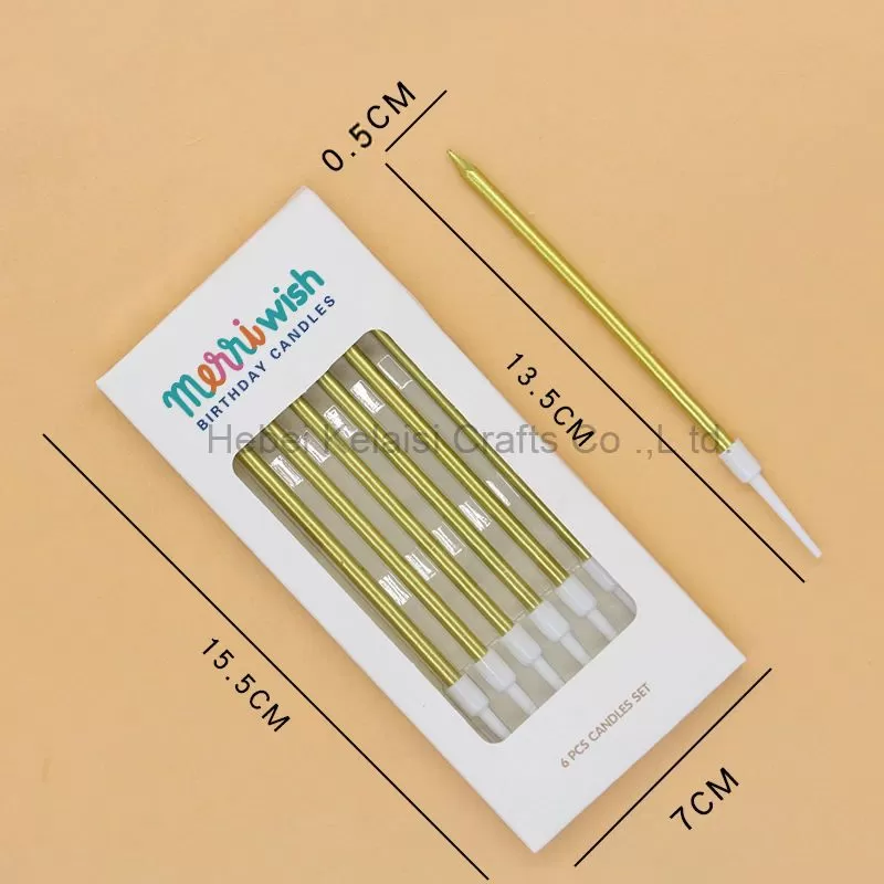 Available in gold, silver, and customized metallic or rainbow colors, these candles are perfect for both classic and playful themes. Each set is neatly packed in a premium paper box, making it suitable for retail display, gifting, and wholesale distribution.